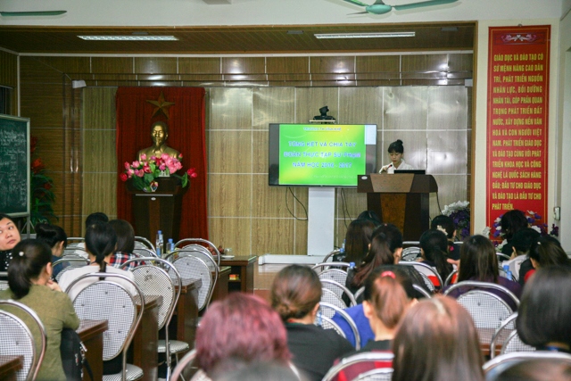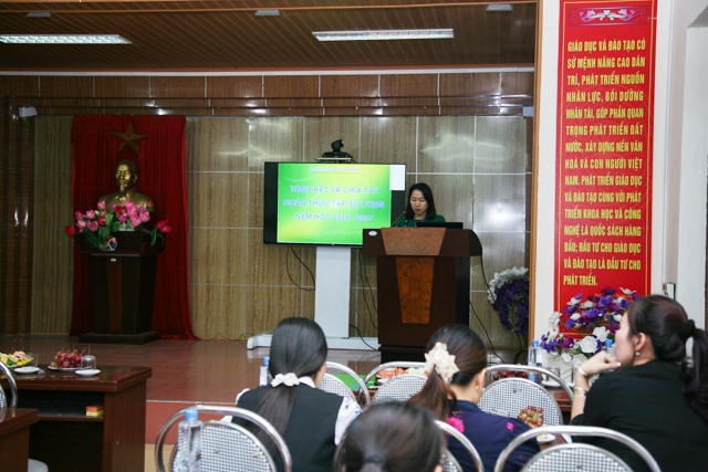 Không khí buổi Tổng kết và chia tay Đoàn thực tập Sư Phạm đã diễn ra đầy quyến luyến và xúc động khi cô Hiệu trưởng Lê Thị Thu bắt đầu phần tổng kết những kết quả thực tập của các giáo sinh; biểu dương, khen thưởng  trong thực tập giảng dạy và công tác chủ nhiệm và không quên dặn dò với các giáo sinh để có nhiêu kinh nghiệm hơn trong nghề dạy học.