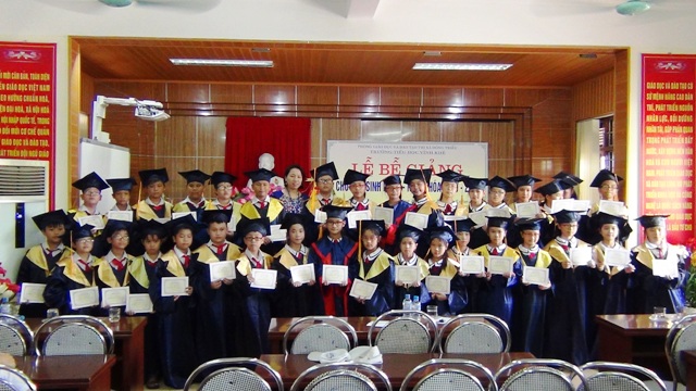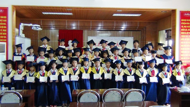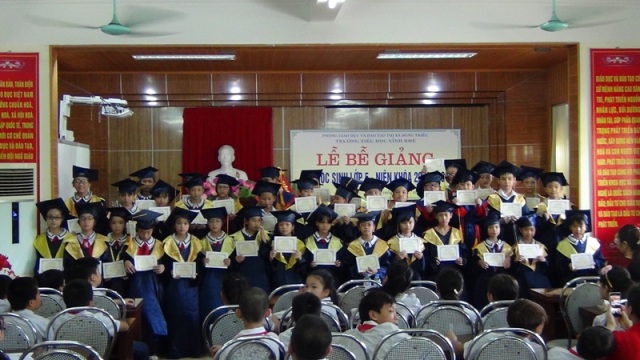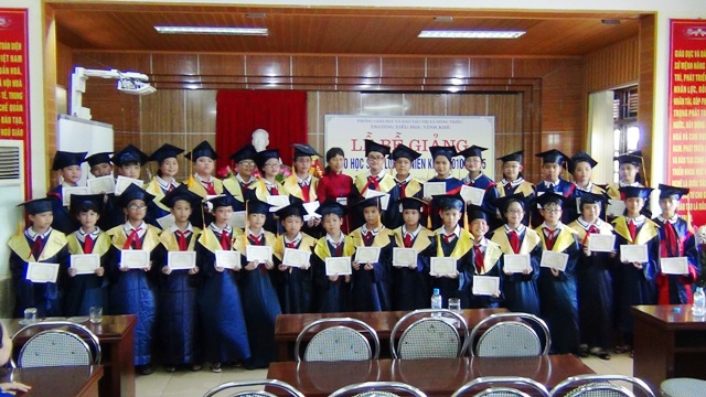 Các em học sinh khối 5 trong lễ bế giảng năm học 2014 - 2015
