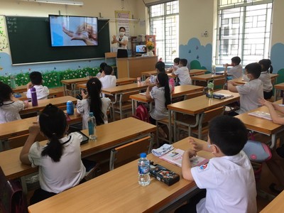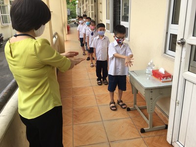 Tiết học đầu tiên dành cho các cô giáo chủ nhiệm hướng dẫn học sinh cách rửa tay diệt khuẩn, cách đeo khẩu trang đúng cách, nhắc nhở các em thường xuyên bảo đảm vệ sinh trường, lớp học sạch sẽ; …Bên cạnh đó bằng hệ thống loa phát thanh của nhà trường đã thường xuyên hướng dẫn, nhắc nhở học sinh về các biện pháp vệ sinh, phòng, chống dịch bệnh.