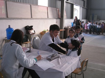 Trường Tiểu học Vĩnh Khê tổ chức khám sức khỏe cho học sinh toàn trường.
