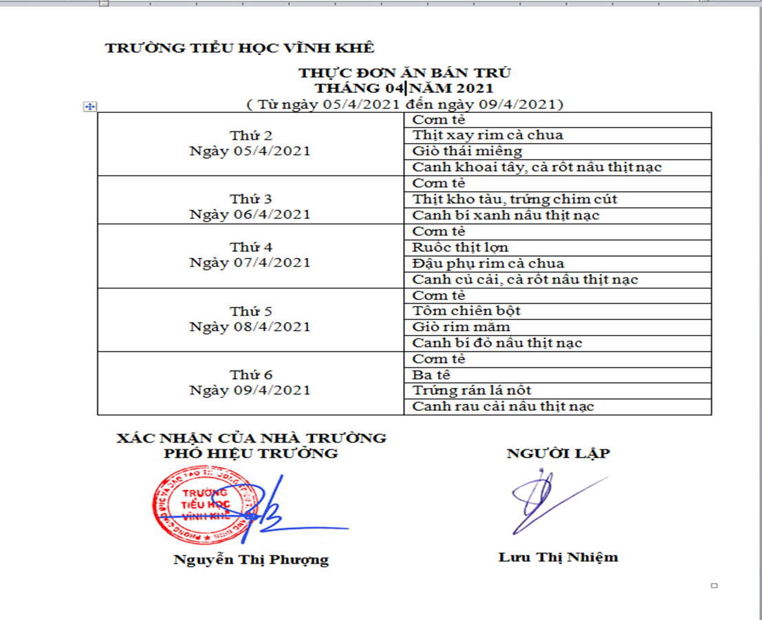 - Thực đơn ăn bán trú tháng 10 ( thực hiện từ ngày 19/10/2020 đến ngày 24/10/2020) (19/10/20)