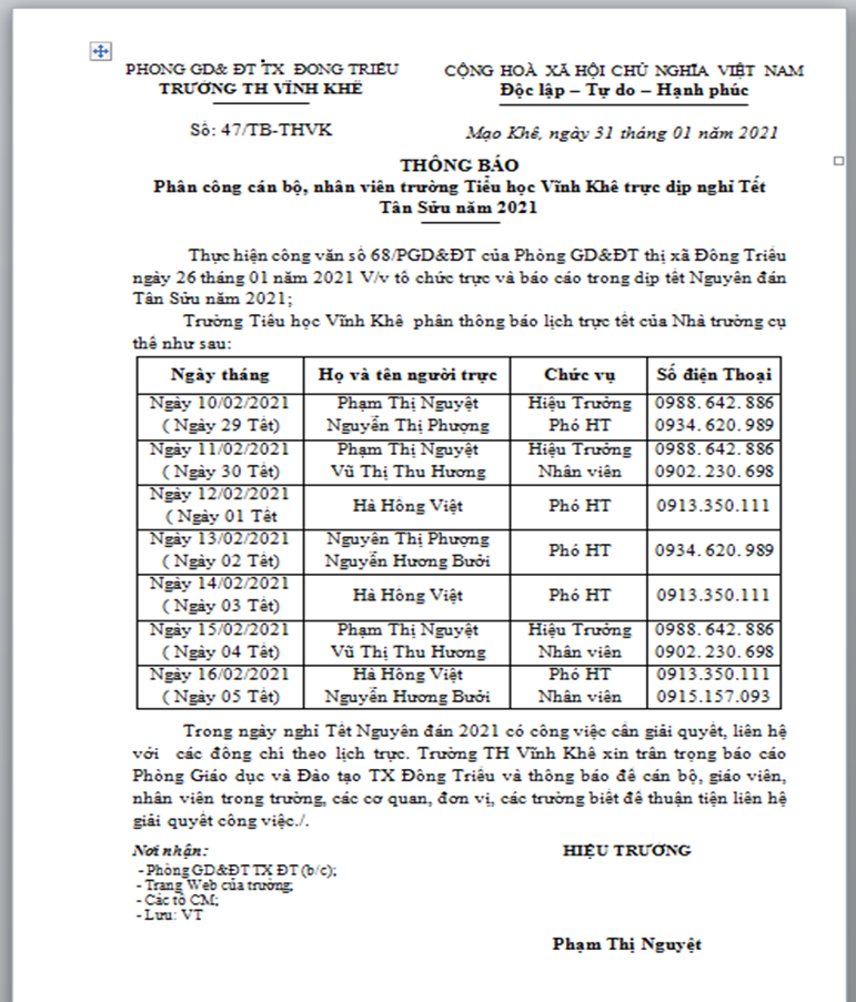 - Lịch trực tết xuân Canh Tý 2020 (17/01/20)